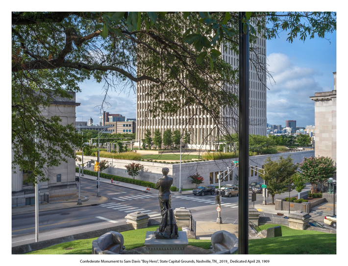 Since the summer of 2017 Diaz has focused his efforts on the project, History, Memory, Myth; The Confederate Monument in the American South. Within this project, Diaz questions how race is intertwined with history, memory, myth and place and how that manifest and is reconciled within a contemporary American experience. This five-year journey became Diaz's first into the American South and represented an evolution of his long-term interest in representing the American landscape as a means of examining the perpetually shifting historical, cultural, and political facts and fictions of the United States. The resulting images were made while traveling over 40,000 miles throughout the South, collecting vintage vinyl records, eating Southern food and when possible, living out of the back of his Subaru.