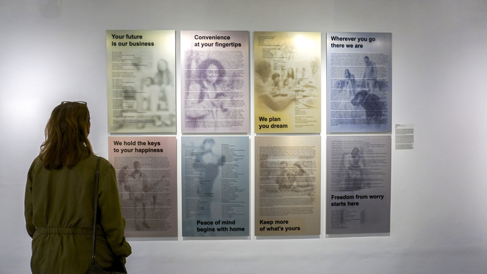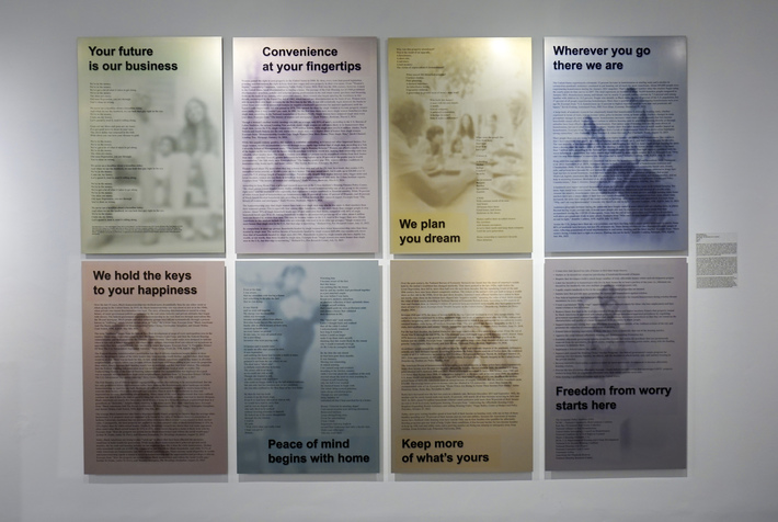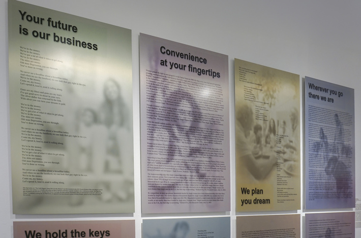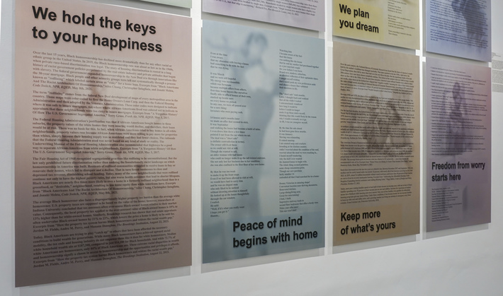 During the pandemic, Mendoza used statistical research to address international perspectives without travel. Her 2022 mixed media public art installation, The Destination Café, pairs the local affordable housing crisis with similar challenges faced by citizens worldwide. It debuted at The Art Kiosk, Redwood City, CA, from August through September 2022. Her new, eight-image installation addresses the banking industry. With a mix of statistical information, personal narrative, song lyrics and audio, We Value Your Business, like much of her past work, employs elements of seriousness and humor, where statistics represent sobering facts, while a commercially inspired design, pastel colors and music hint at the absurdity/tragedy of our current accepted reality. The 8, 24" x 36" poster-sized panels are printed on metal through the dye-sublimation process. The new work debuted at the Thompson Gallery, San Jose, CA, March, 2024, and was featured in national, juried exhibitions at Hera Gallery, Wakefield, RI, the Old Walls Gallery, Albuquerque, NM in fall 2024, and Woman Made Gallery, Chicago, IL in 2025. Selections from 3 bodies of recent and new work will be included in a 3-person exhibition titled "Under the Same Roof / Bajo el Mismo Techo" at Works/San José from November through December, 2026.