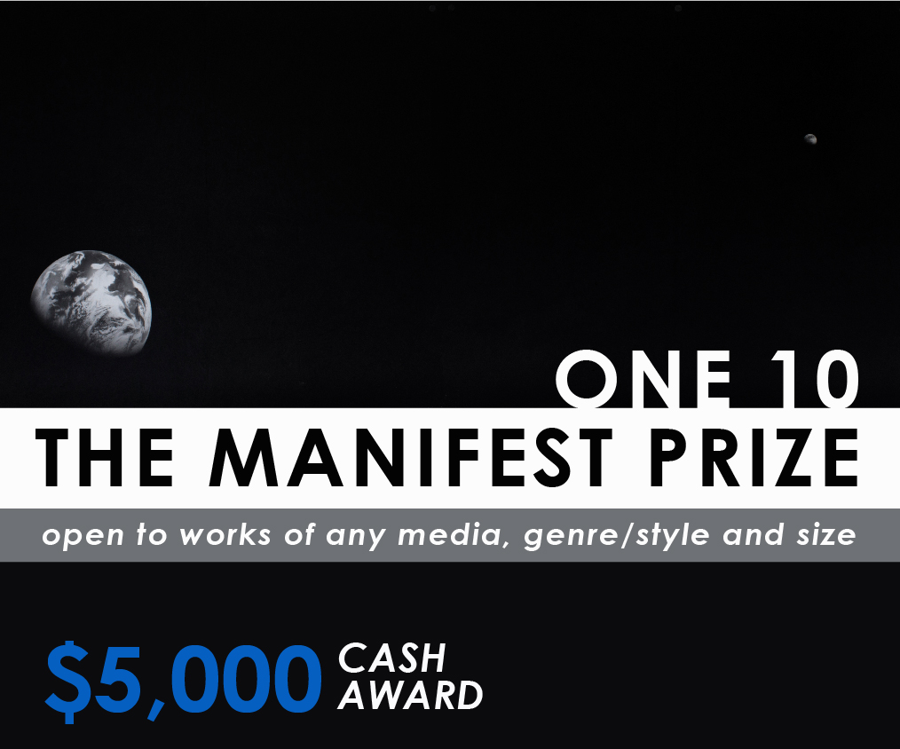 In 2015 we were excited to announce that our non-profit board of directors approved an increase in the annual Manifest Prize (ONE) award amount to to $5,000. This underscores our organization's strong desire to reward, showcase, celebrate, and document the most exceptional artwork being made today, and to do this in a tasteful non-commercial public context. Further, it is to incentivize the creation of excellent work and to support individual artists in meaningful, career-impacting ways.