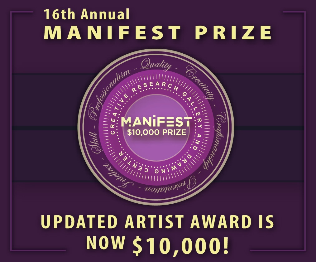 The Cincinnati based non-profit arts organization and gallery, Manifest, invites visual artists and designers to submit original works of art in any media, any genre/style, any size for consideration to be awarded this year's Manifest Prize. One work will be selected for the $10,000 award, featured in the gallery, and published. Four semi-finalist works will also be recognized and published.