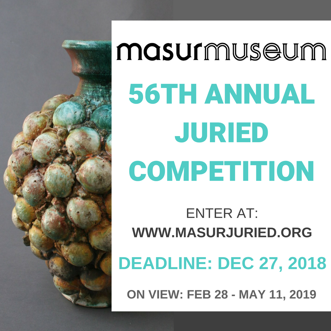 All work must be completed after December 31, 2016 and must not have been submitted to the Masur Museum's Juried Competition previously.
