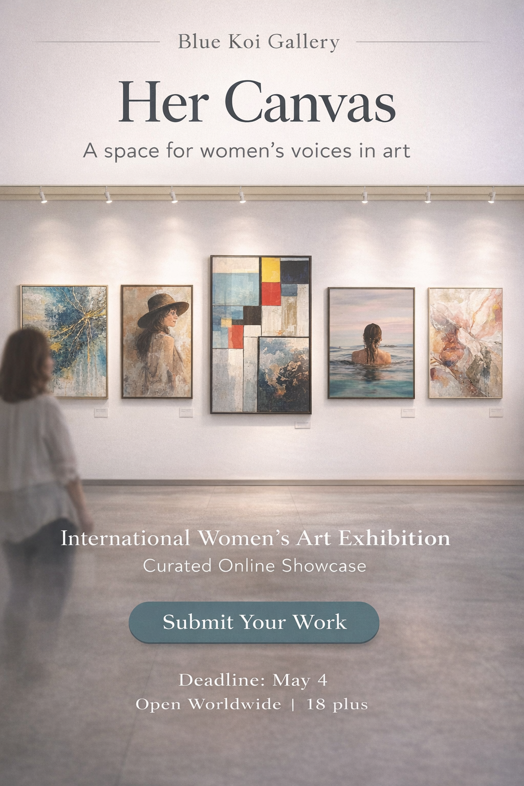 Her Canvas invites women artists worldwide to submit work that reflects their voice, perspective, and creative vision. This open theme (Artist's Choice) competition welcomes both 2D and 3D visual art across all styles and mediums, creating space for authentic expression and diverse artistic practice.