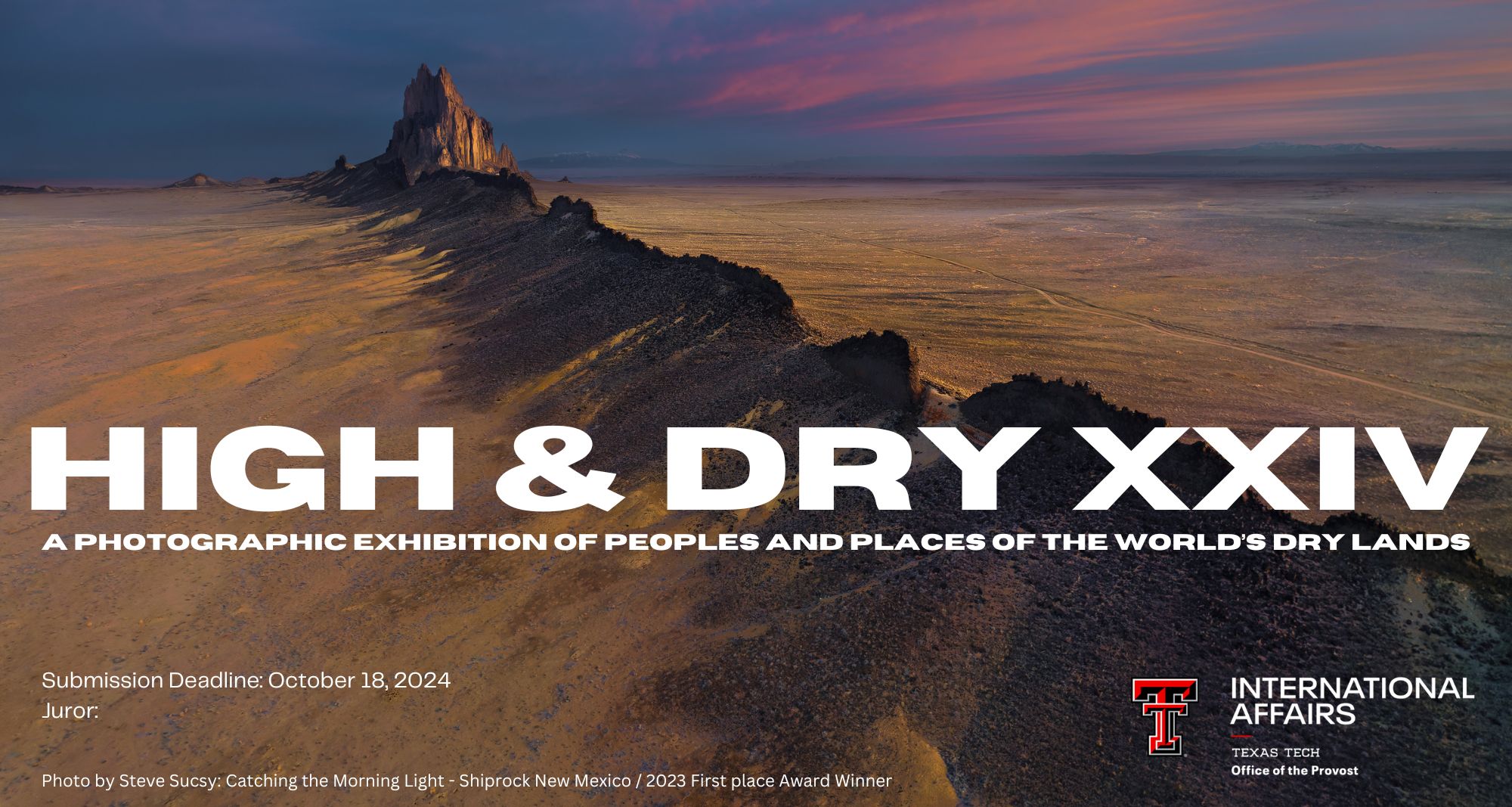 Photographers of all levels are invited to submit work reflecting the dry lands theme of this juried exhibition. The choice of subject (people, animals, or landscapes) is up to the photographer, but the image must indicate a connection to arid or semi-arid lands to be considered for juror selection. Approximately 55 images will be selected for exhibition and shown in the galleries of Texas Tech University's International Cultural Center from December 2024 to February 2025.
