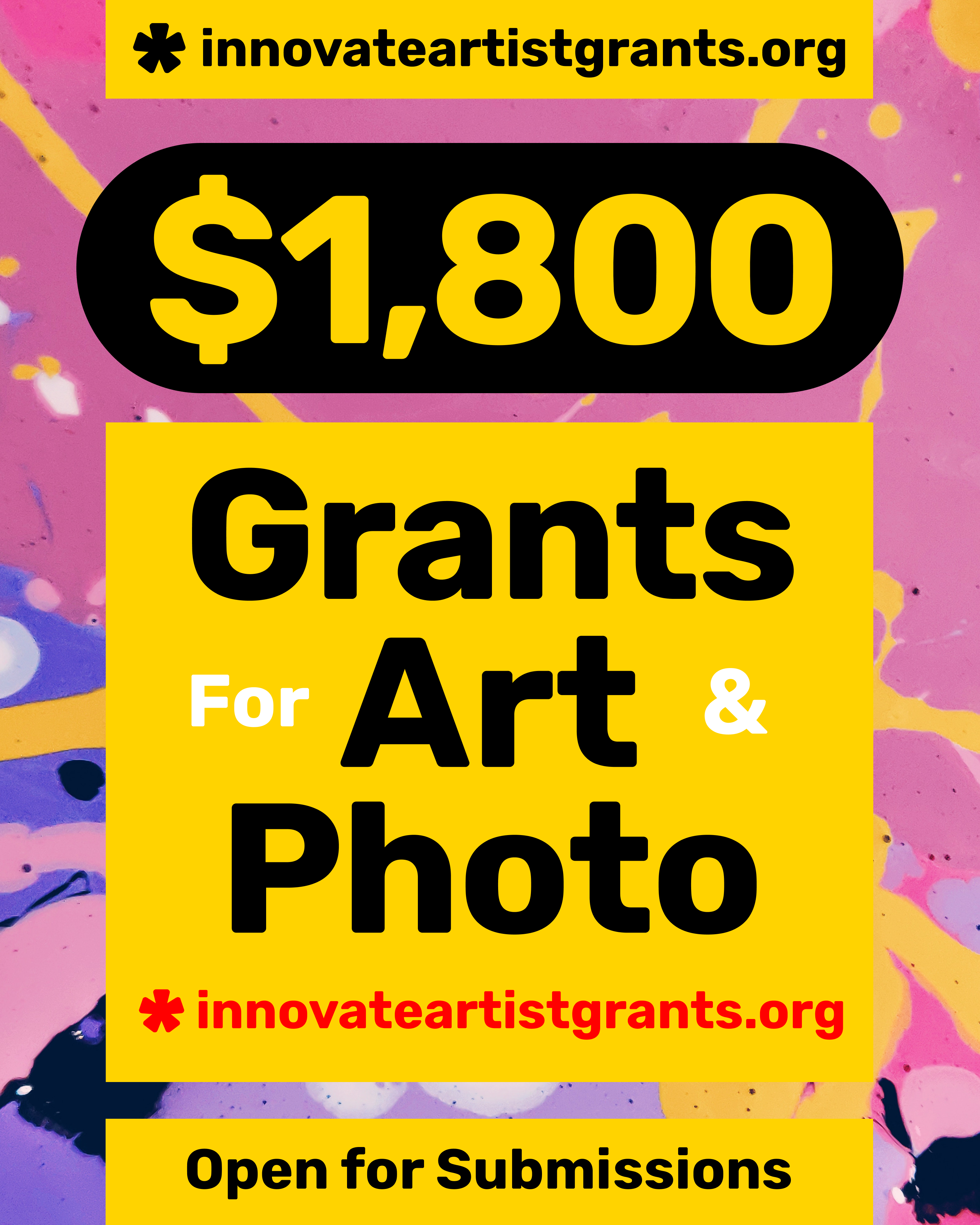 SPRING 2026 OPEN FOR SUBMISSIONS — Innovate Grant is thrilled to introduce our newly increased award amounts of $1,800.00. rnrnInnovate Grant awards (2) $1,800.00 grants each quarter, to one Visual Artist and one Photographer. In addition, (18) honorable mentions (9 in art and 9 in photo), will be featured on our website and join a growing community of vibrant and talented artists. Innovate Grant's commitment extends beyond the grant cycle by promoting the work of selected winners and honorable mentions into the future. For more information and to apply visit https://innovateartistgrants.orgrnrnCategory: Multiple disciplines and genres acceptedrnRegion: US & InternationalrnAwards: 2 x $1,800.00 USD Grants // 12 x Honorable MentionsrnrnApply Online Todayrnhttps://innovateartistgrants.org