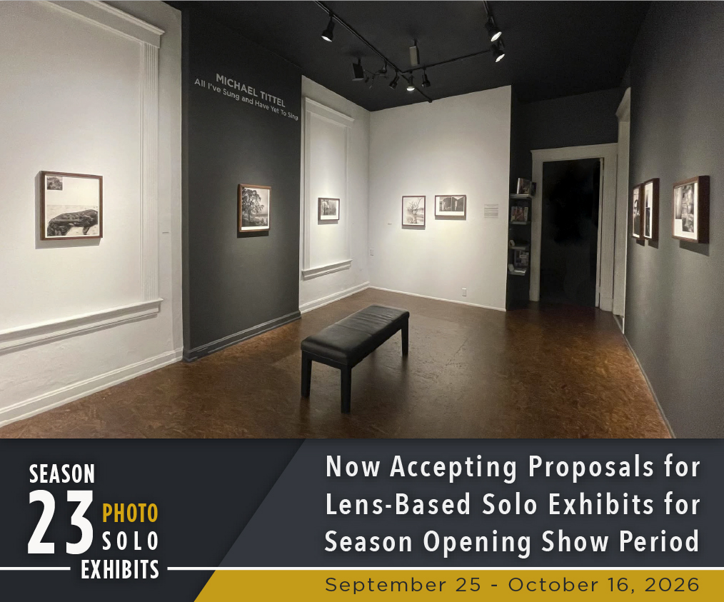 On average, one-third of Manifest's exhibits are dedicated to solo exhibits. Solo exhibitors have included local, regional, and national artists from as far away as New York City, San Francisco, Canada, and Hong Kong. It is important to our non-profit mission that each of our seasons of free public exhibits consist of a balanced mix of solo and group thematic projects. The group shows provide diversity of approach, media, style, and geographic origin, while the solo exhibits provide a deeper insight into an artist's vision. Open to all traditional and non-traditional genre and media qualified in some way as 'photographic'.