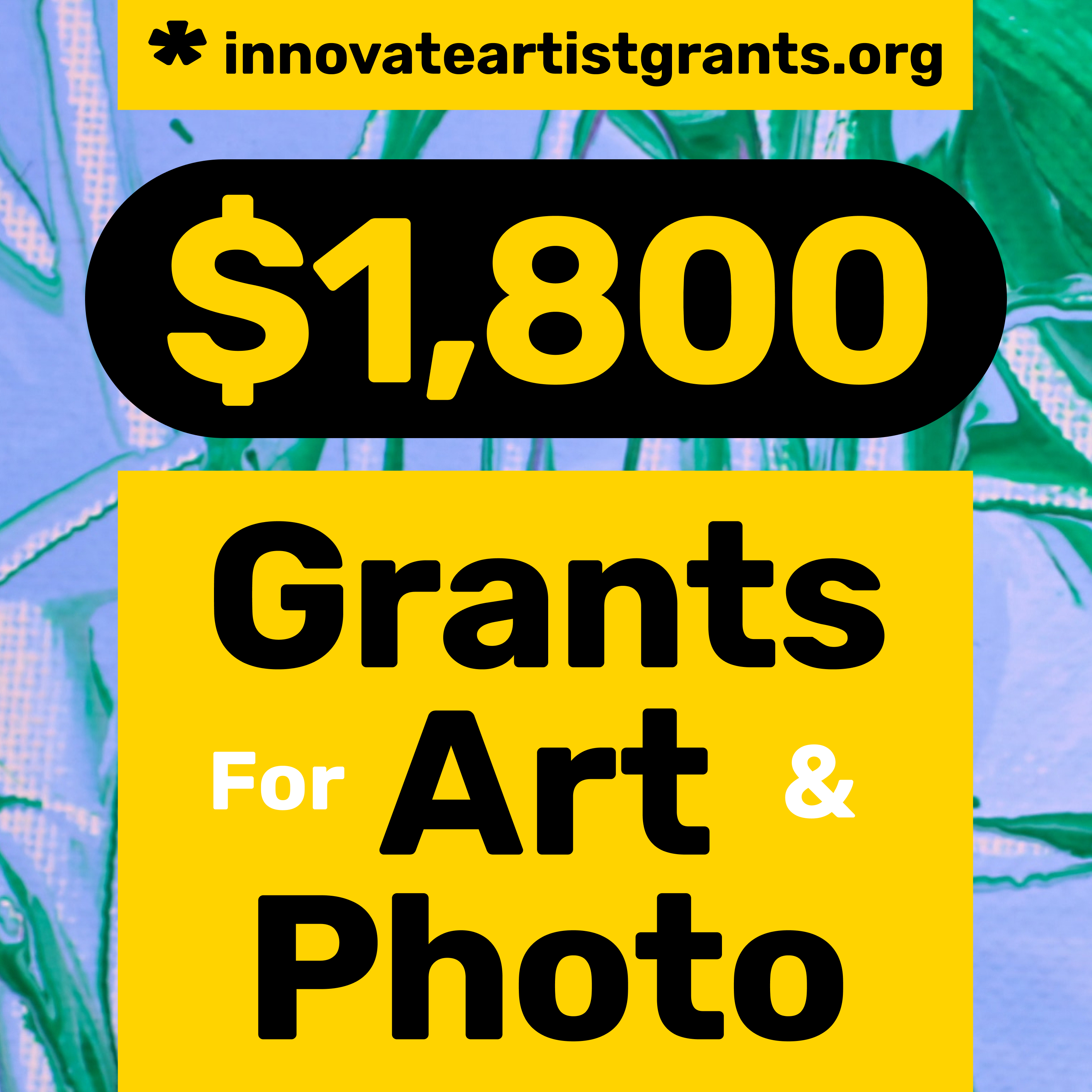 Innovate Grant awards (2) $1,800.00 grants each quarter, to one Visual Artist and one Photographer. In addition, (12) honorable mentions (6 in art and 6 in photo), will be featured on our website and join a growing community of vibrant and talented artists. Innovate Grant's commitment extends beyond the grant cycle by promoting the work of selected winners and honorable mentions into the future. For more information and to apply visit https://innovateartistgrants.org